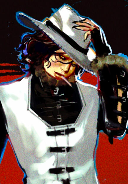 Three boys, as ragged as they come, huddled in the corner of the office. The one talking had his knees drawn up, a blood-soaked rag pressed against his face, eyes raised to the figure leaning in the doorway.She was wrapped in pale leather, buckled and fastened by black straps. Her sleeves ran long and dark, tufts of fur over the sniper gloves that exposed her taloned fingers. She had no eyebrows to speak of, and stranger more were the stretch marks that scarred her cheeks, slurring her speech that made the boy listen more intently. Over dirty brown curls she wore a hat so white it caught the lamplight in ways that hurt to look at. It sat low and casted a shadow over her eyes, not that the boy dared to look into them anyways – he wasn’t sure if he’d find anything human in them.“What’d he look like?” the figure asked, the smoke from the cigarette curled up in the air thick with dust and sweat.“It was dark, ma’am. Couldn’t see much. We was scared out of our minds. He shot Tommy, you know. We ran. I ran.” He winced, voice cracking. “Got me right here, too. Oh– greasy long hair, it was all over me when he cut me.” His hand shot as he touched the gash that stretched across his cheek, still raw, still wet with blood. The others nodded in silence.“And what were you boys doin’?” came the same, flat tone.“I swear, ma’am, just lookin’ at his horses. Didn’t know they was his. Honest.”“Just lookin’...” she raised the part of her face where her right brow should be. One hand clung on to her gunbelt with a clawed thumb. The boy’s voice trailed off into a mutter, and the other two stared down at the floor like they’d find something there to save them.“Pager,” the sheriff interrupted as he swung into the office. “I heard what happened.” He peered past Pager and studied the sullen group of boys. The eyes of a blond one lit up. “You’re her. The Pager woman. Strong one. Ma’am, you gonna catch this man? What he did to us–”“Like I said, I’ll see what I can do.” She took one last drag from the cigarette, then flicked it to the floor, grinding it out under her dusty heel. “And stay out of trouble,” she pointed at the boys. With that, she gave the sheriff a nod, and turned swiftly out into the dark.